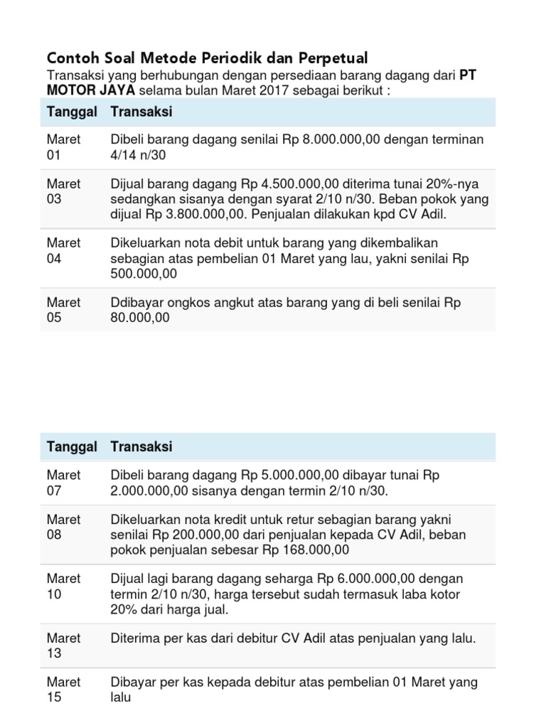 Contoh soal persediaan metode periodik dan perpetual. Check spelling or type a new query. Maybe you would like to learn more about one of these? We did not find results for: